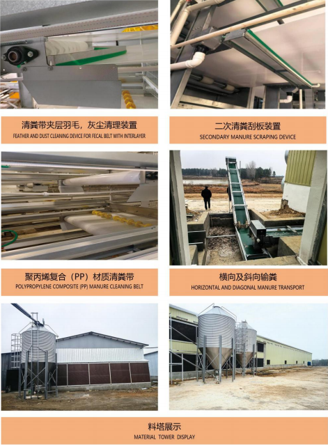 The frame of the whole machine is made of 275g galvalume alloy sheet, featuring high corrosion resistance. the equipment adopts steel rollers covered with rubber, with a spiral thread processing on the surface, which prevents the manure ceaning belt from slipping and deviating without damaging the belt.