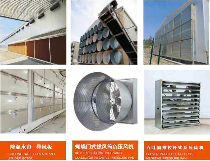 Reasonably configure side wall ventilation windows, cooling water curtains, air guide plate area, and negative pressure fan models and quantities according to different regions, poultry house volumes, and breeding quantities. Maximize the cooling effect of the poultry house.